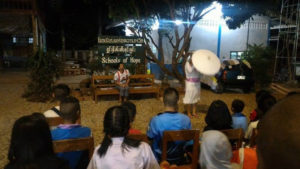 We prepared some fine mattresses for the children to sit on, put the bench and explained to Jeni the changes in music … our improvised sound technician.