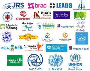 Nous avons collaboré avec de nombreuses organisations, associations et fondations dans le domaine de l’aide humanitaire internationale et de la coopération: OIM, UNHCR, UNRWA, Cáritas, Jesuit Refugee Service, BRAC, Blue Dragon, Fondació, Enfants du Mekong, Phare Ponleu Selpak, Shanti Bavans , Child World Cancer, etc.
